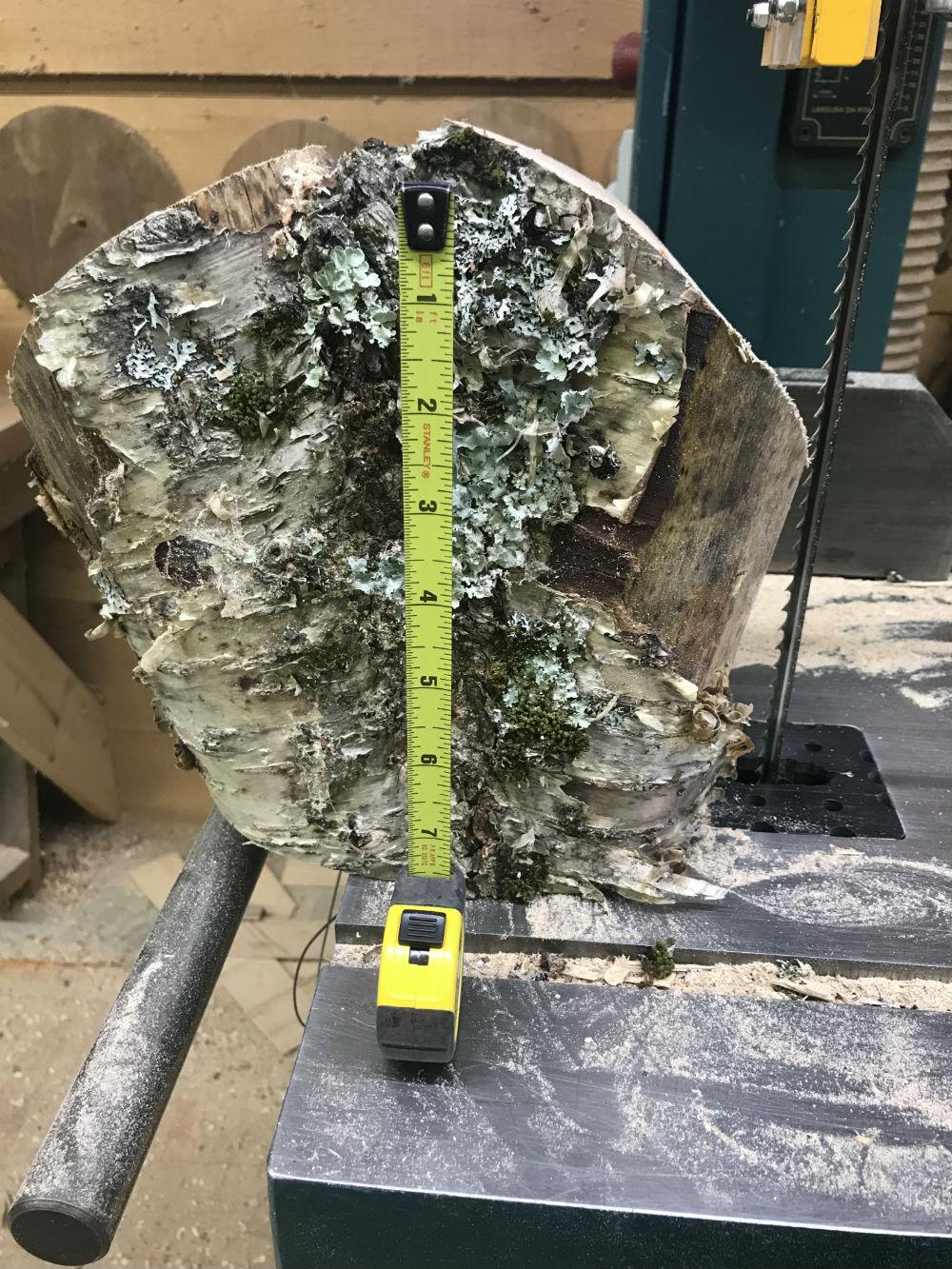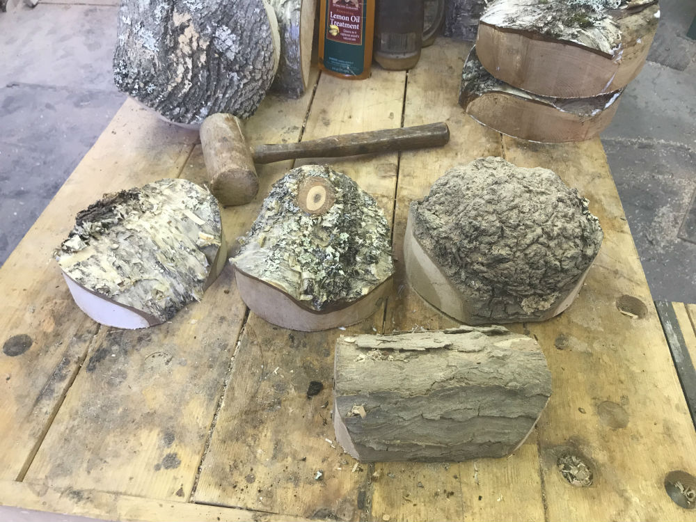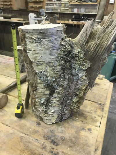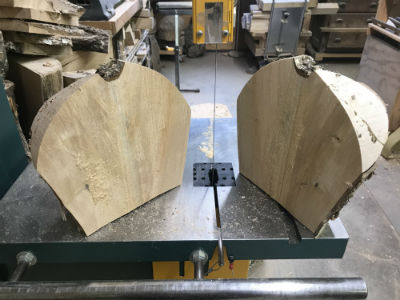 This specific project starts with selecting the wood blank, roughly rounding it on the bandsaw (leaving the "down trunk" bottom flat for the next cut safely).