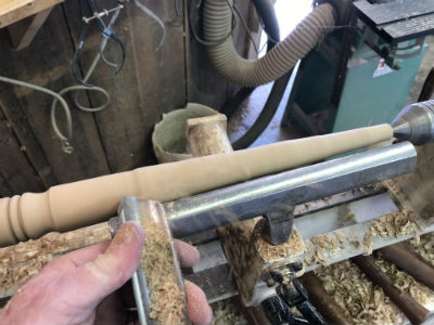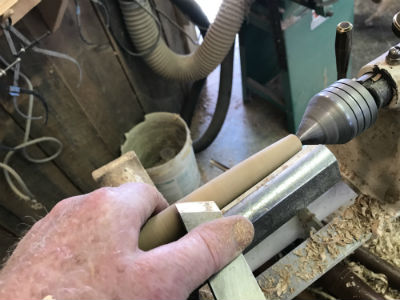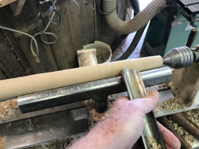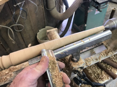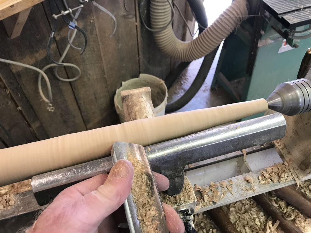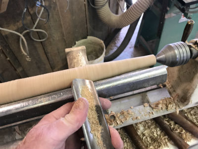 Once the taper is established, still slightly oversized, the final smoothing cuts will work best using a skew chisel.