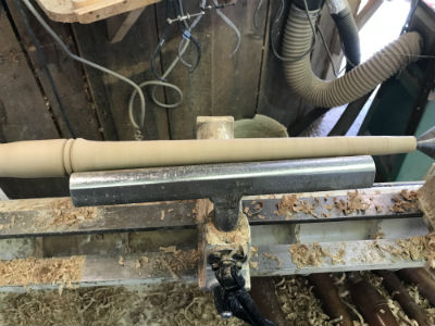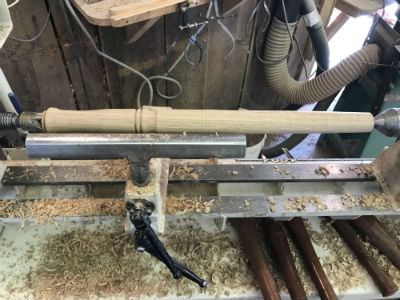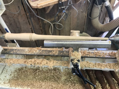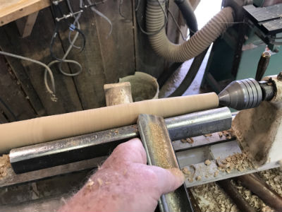 The next cut should start an inch or two to the left of the previous cut, and again cut toward the point always working the flow of a steady, smooth cut that tapers toward the tailstock.