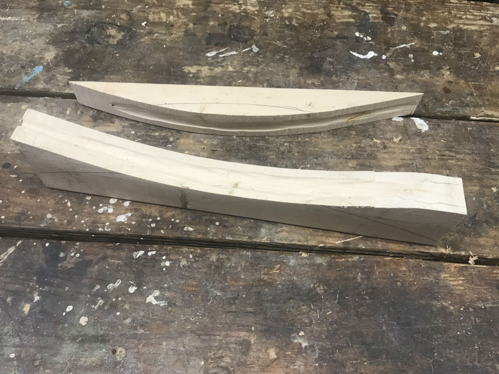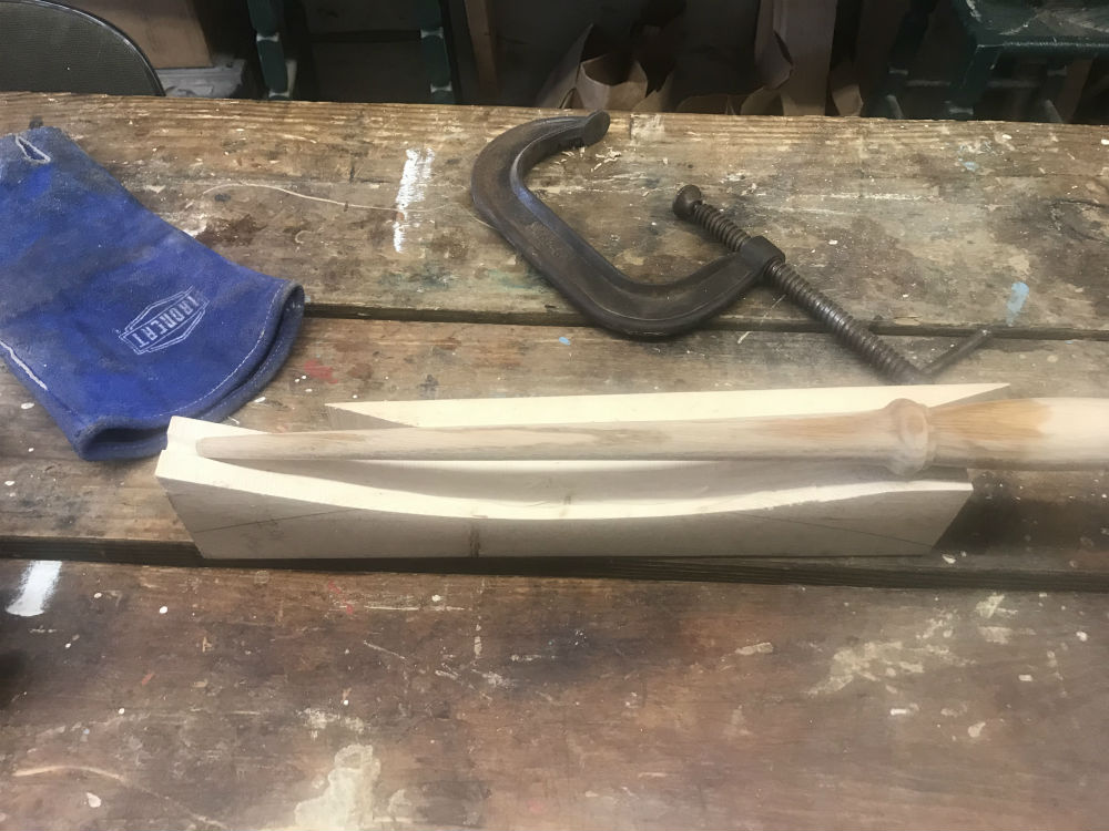 2 X 4 section (or other spare block of wood) about 16", use the bandsaw to create a pleasing curve (this is
