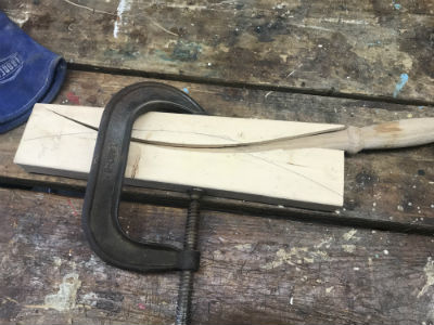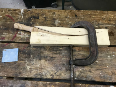 At the end of steaming, move fairly quickly to place the heated hook into the form and tighten the clamp fully.