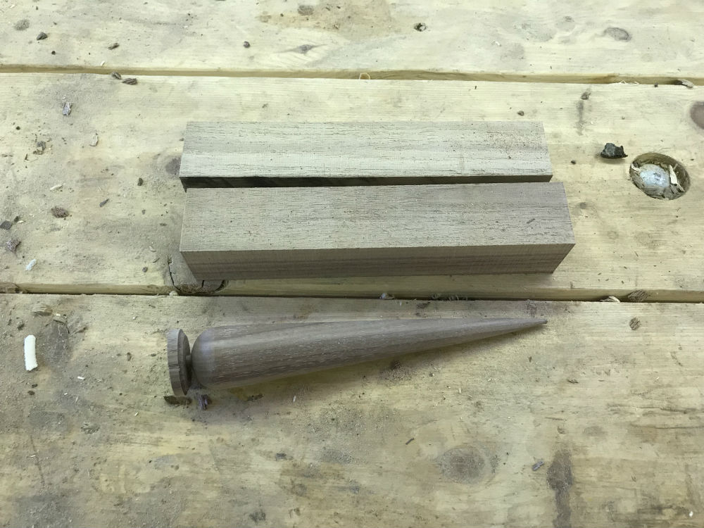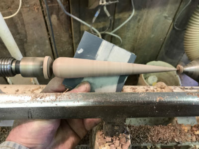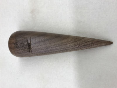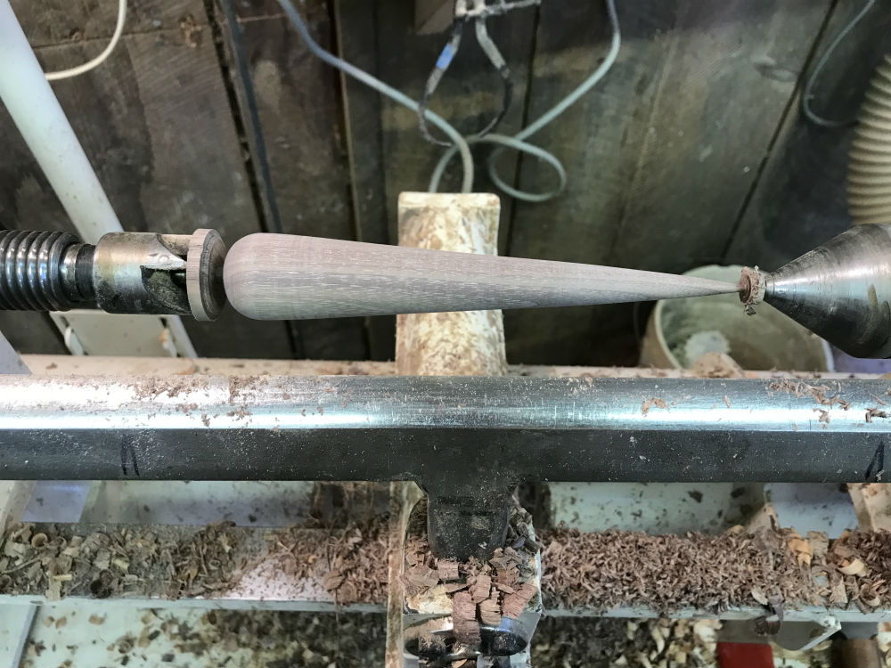 The challenge to the turner, of course, is to turn the blank with an even taper, a soft, fully rounded "palm" ball on the end, and a pointed but not sharp working end. Clearly there is no way to hold the blank while turning, and the end-goal is for a seamlessly smooth tool that is kind to both the hands and the lines being spliced.