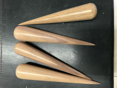 Making a series of fids offers a rewarding experience in making multiples and in challenging the turner to produce consistent sizes and tapers. These make wonderful gifts.
