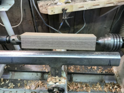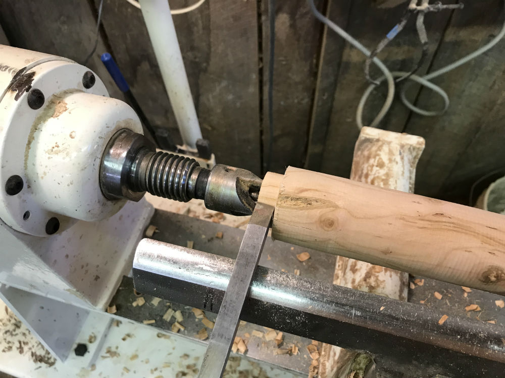 With the diameter quite small on the right (tailstock), establish a waste block for that end.