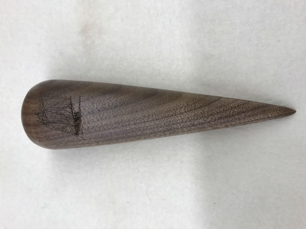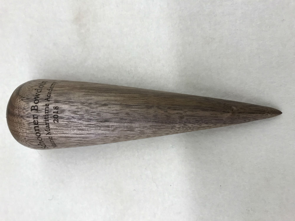 In the Spring of 2018, the Master of Schooner Bowdoin, Captain Will McLane, approached me before his planned summer sailing trip to the north seeking a collection of potential small memento gifts that he could take along and give to various other mariners and port officials that they might meet along their travels. In the course of our conversation, we decided on making a series of fids – a small, easily carried, useful, and especially recognizable mariner-oriented kind of gift that allows the person to open the weave of a line (rope) in the course of splicing.