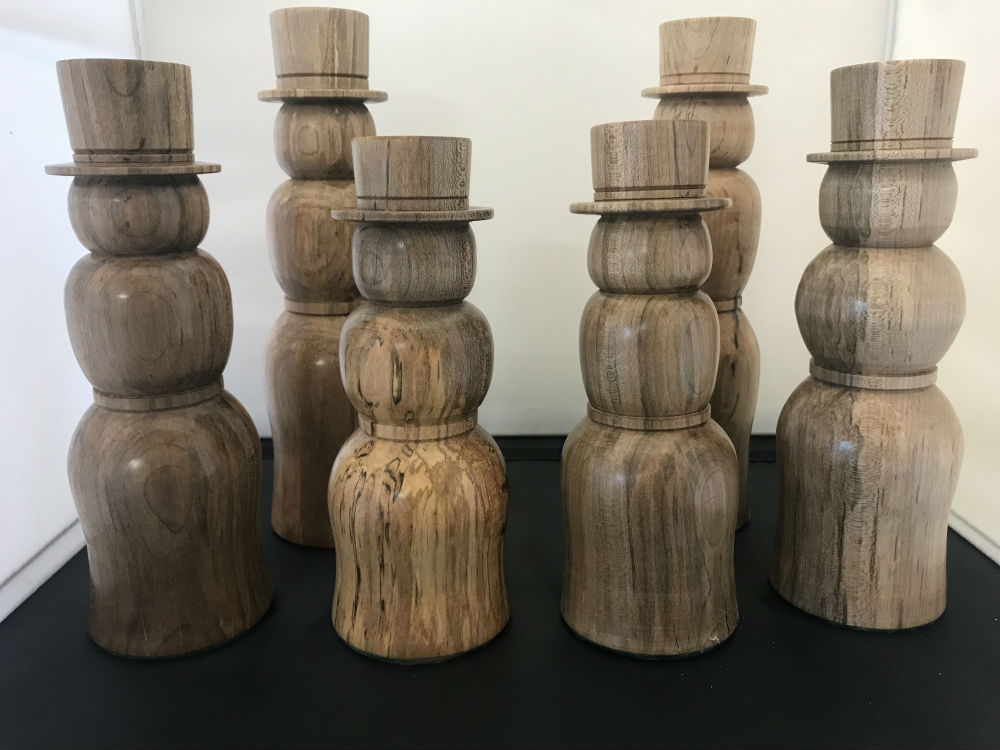 many different turned items they have acquired over the years – tops, belaying pins, small