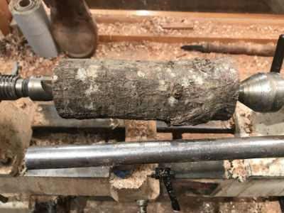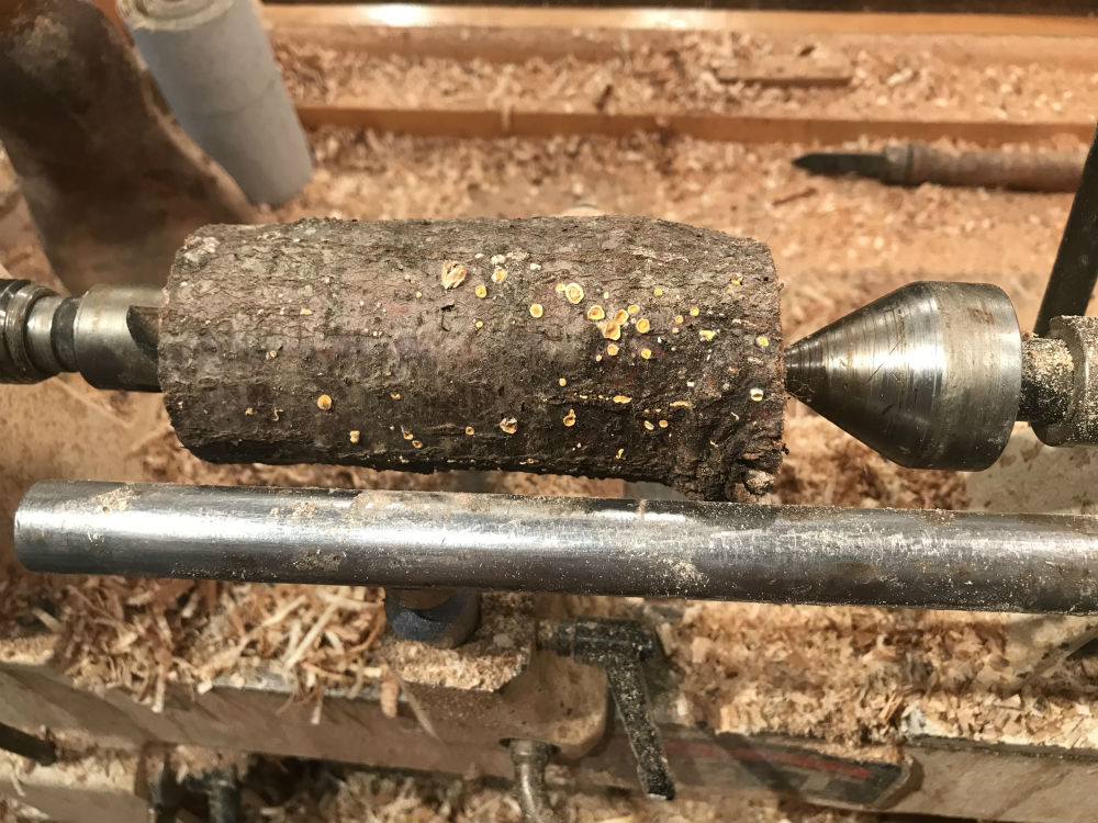tree, ideally with some spalting and bark, handy to mount on the lathe – "a real piece of