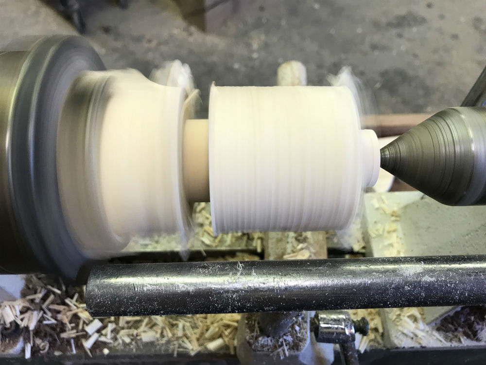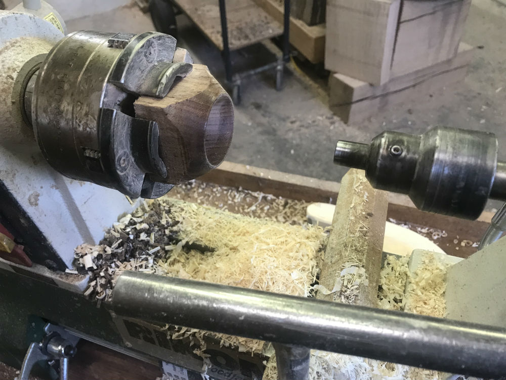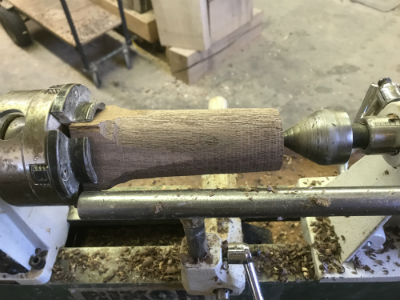 Round the piece to a finished diameter of 2" and mark the true left side 2" and center with a pencil line.