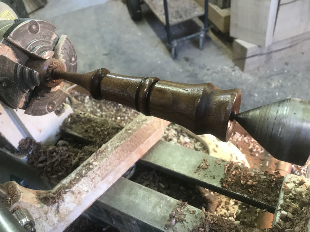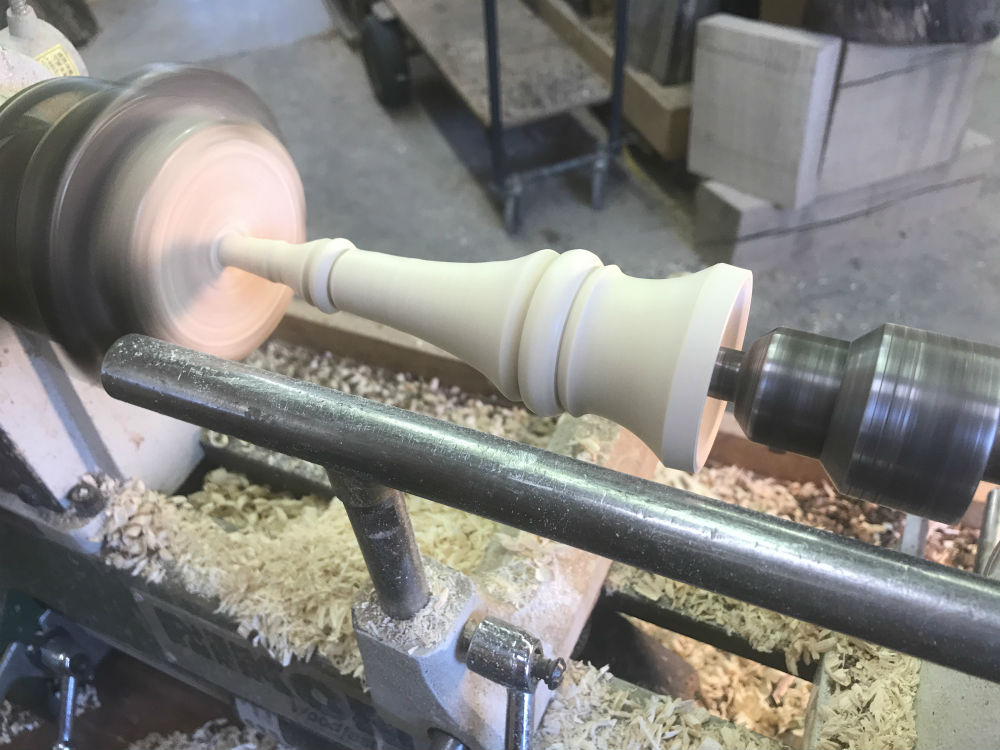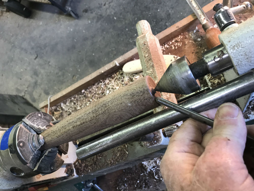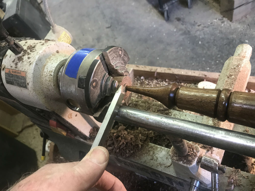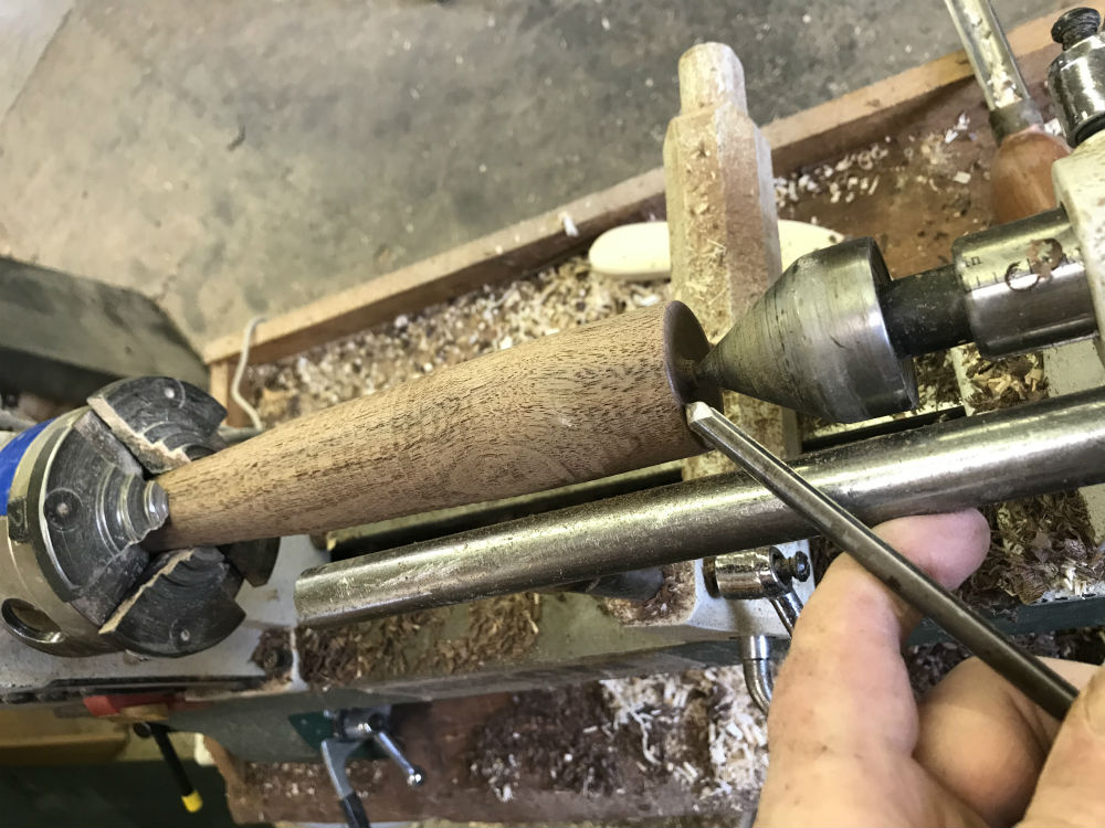Then shape, sand, and finish the piece using the blunt-end live center to stabilize it.