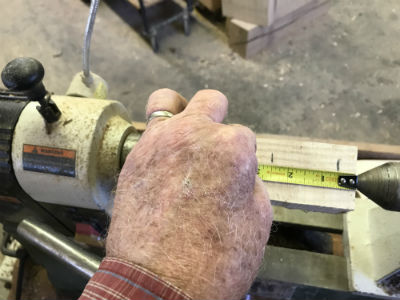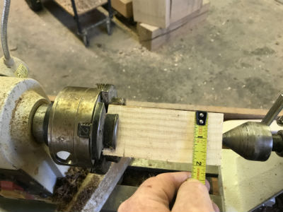 Begin by marking the 2" distance on the chuck-mounted blank.