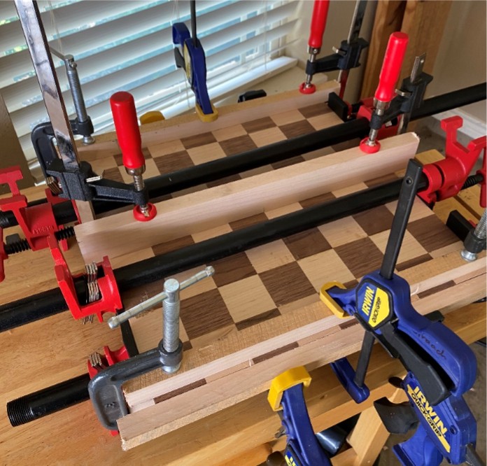 Next you perform another glue up just as you did before. This time it is extremely important to make sure that each line lines up perfectly before applying the clamp pressure.