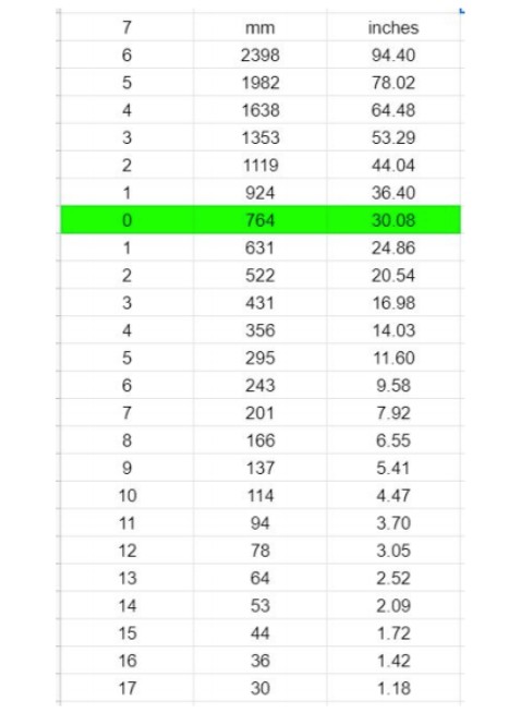 We can stick with the 30 inch, 764 mm start point and change the ratio from