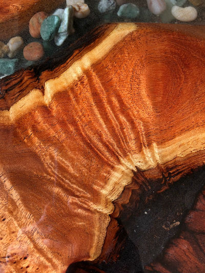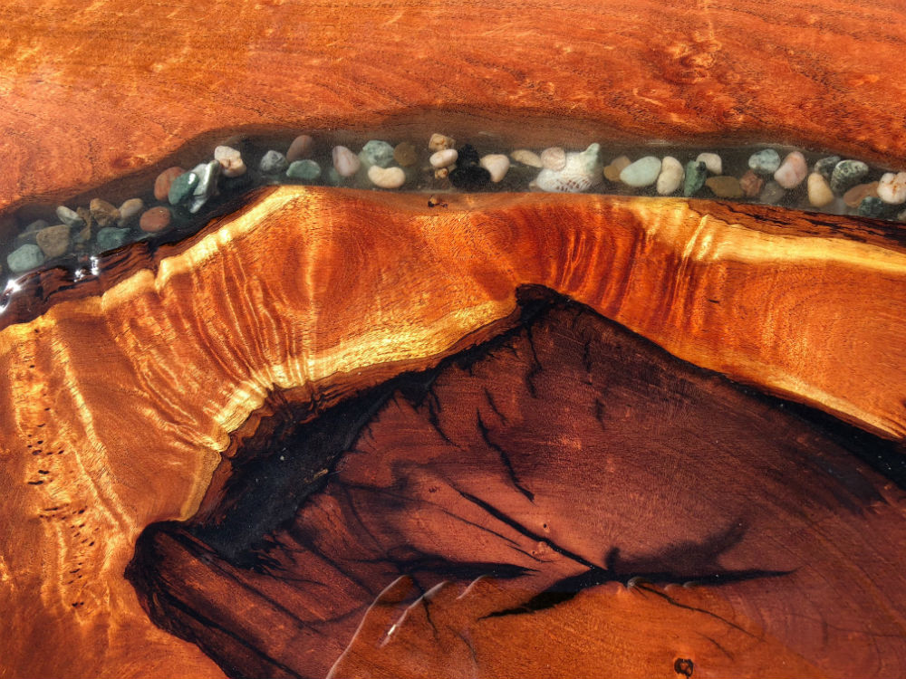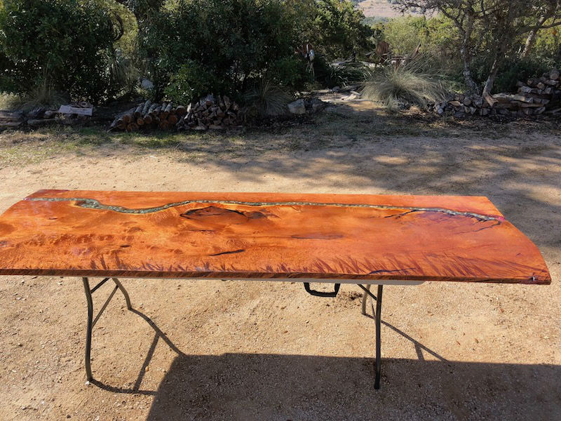 The desktop needed to be wider than the individual boards, so i added an epoxy “river” to join two board lengths to the desired width…but the woodworking is not the thing, it's the figure on the one board that is magnificent. I can only imagine that this large mesquite tree underwent some remarkable stresses during its long life..