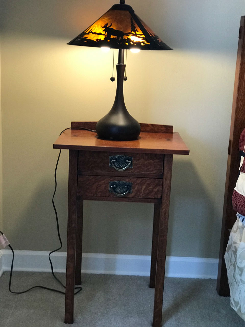 I can't explain how or when, but I fell in love with wood. The way it felt and could be made into objects of art and utility made it feel like wood had an almost symbiotic relationship with humans. I am especially fond of the Shaker as well as the Arts & Crafts traditions. My projects are usually started on a whim; I see a piece of furniture that I like and decide to make it. I usually draw up my own plans and start from there. My three grown children are my best customers whose requests usually begin with "Dad, can you do this?"
