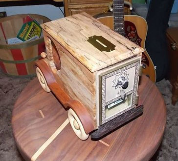 Below are several different views of a bank I made for my grandson using an old post office door a friend gave me. The lock still works using the original combination.