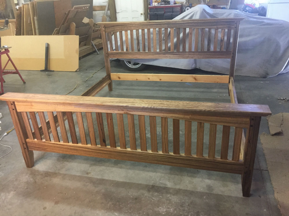Mission or craftsman style king size bed in Paldao wood with pinned