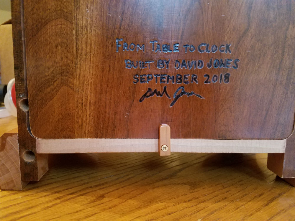 back. I wrote on the back (using a wood burner), "From table to clock". I gave this clock to my