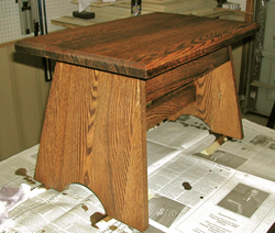 a relative, a stool from reclaimed old-growth oak for a friend, and a "katty shack" (see the
