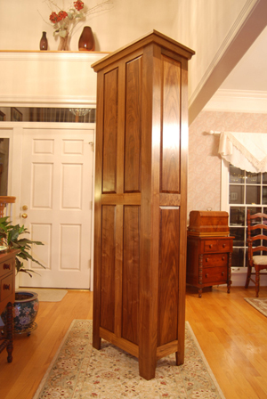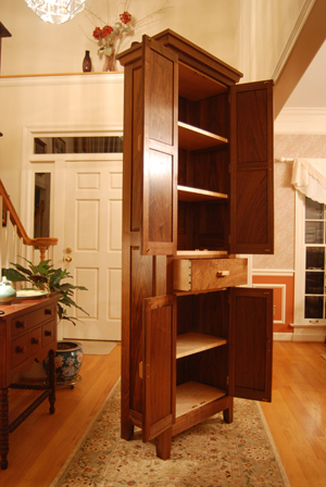 The cabinet is made from highly figured walnut which I purchased rough sawn and hand planed the