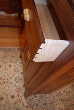 dovetails for the drawer back. The drawer bottom is white oak with hand beveled edges.