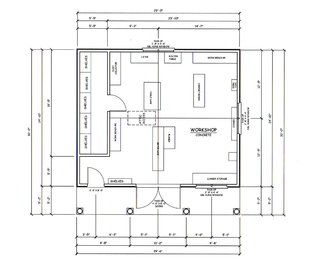 I designed and built this workshop with my wife, Tonya, in the summer of 2007. The exterior of my