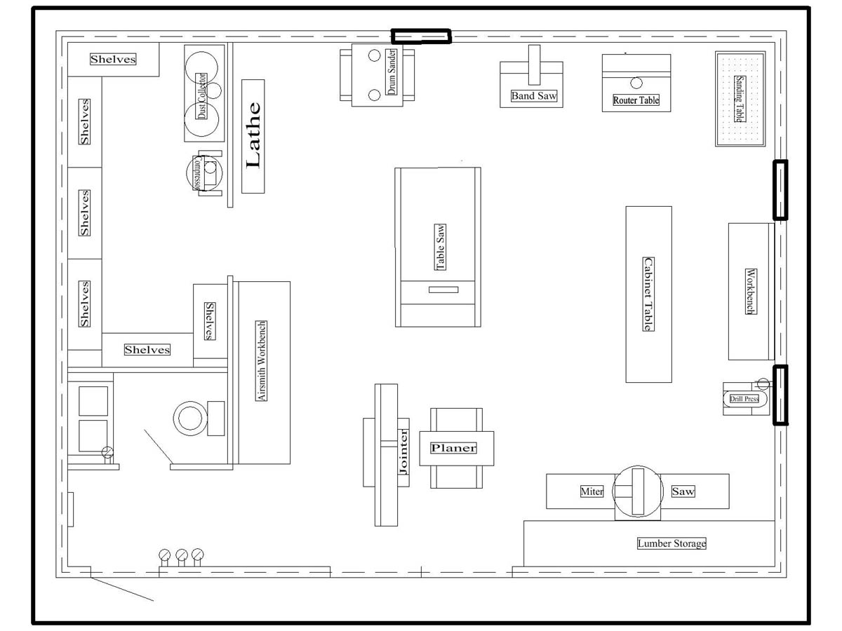 saw, planer and jointer. The main line circles around the walls all the way around to the miter