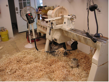 I turn outboard, I can make a bowl up to 24 inches in diameter, and I can pretty much keep up with