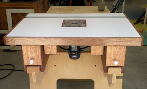 This is a small router table I designed for a Bosch Colt trim router. I’ve used it a good bit and