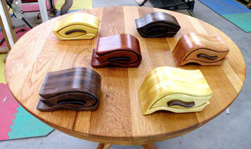 A selection of Bandsaw Boxes of Walnut, Yellowheart, Mahogany, and Cherry