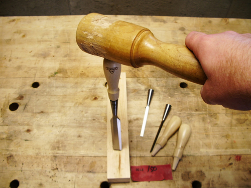 cutting edge of the chisel on a piece of softwood and give the top of the handle a good bash with a