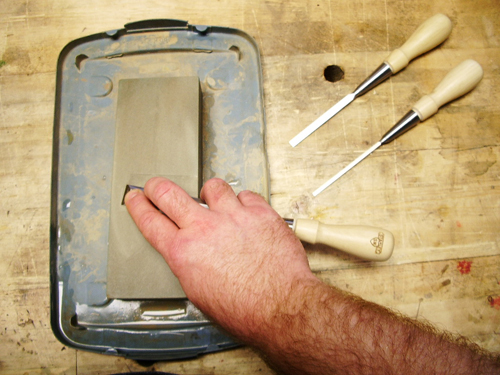 I chose to flatten the back of these chisels with my 200 grit Japanese waterstone. Of course you