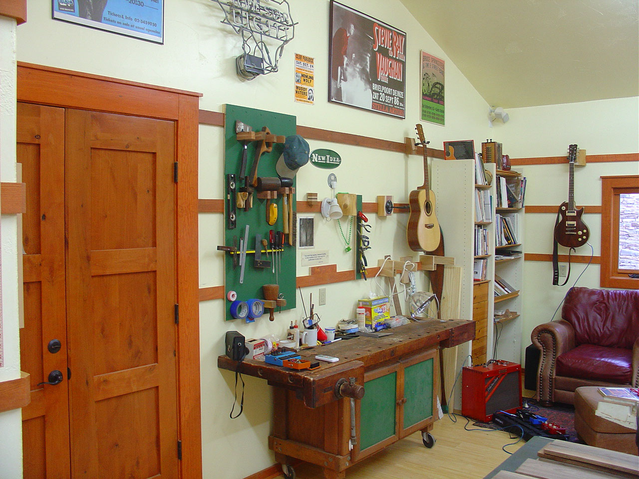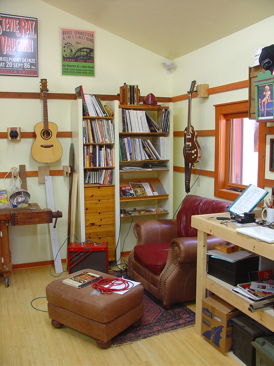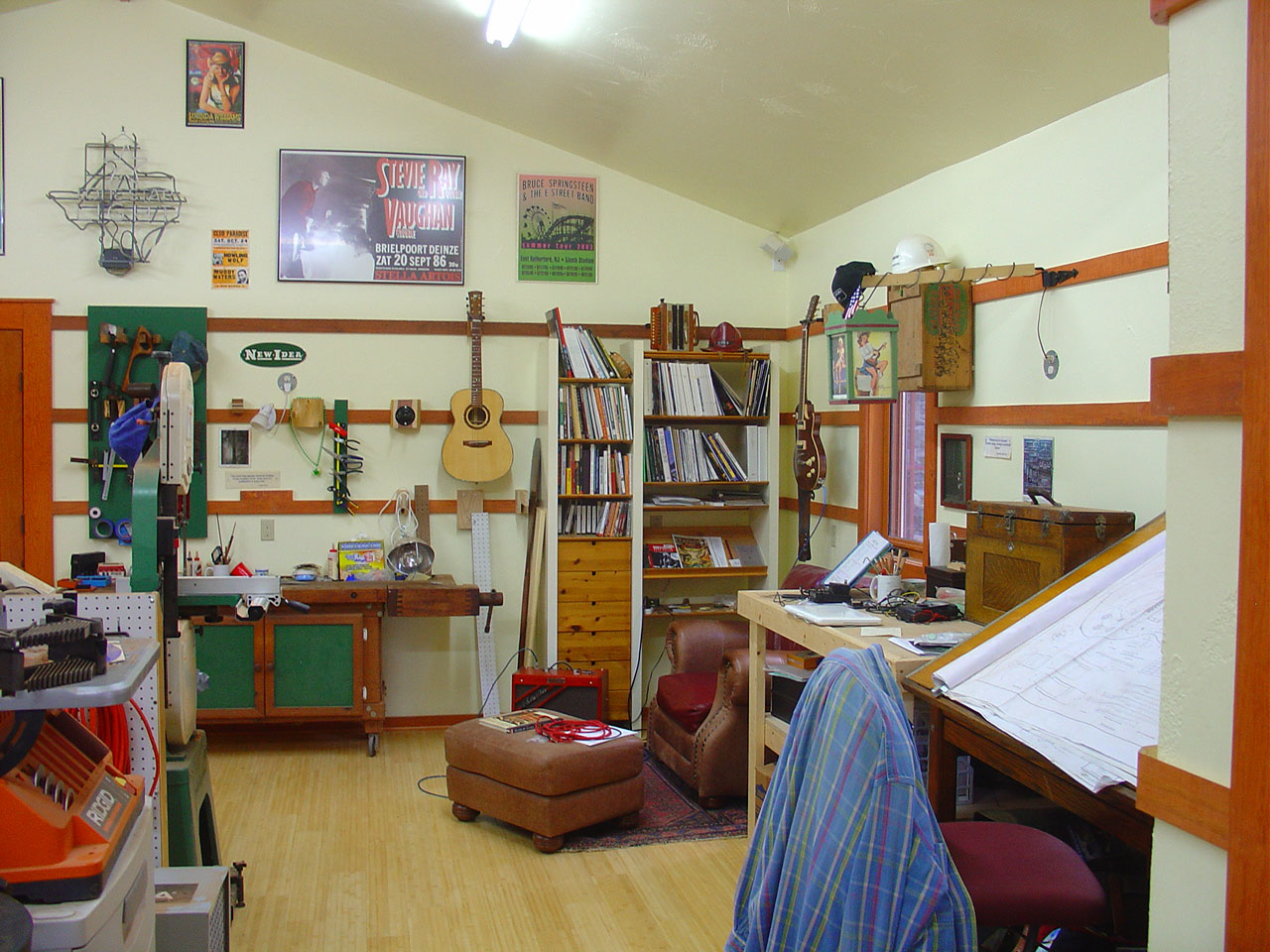 In the shop I have a corner I use for guitar playing, writing, and reading/project