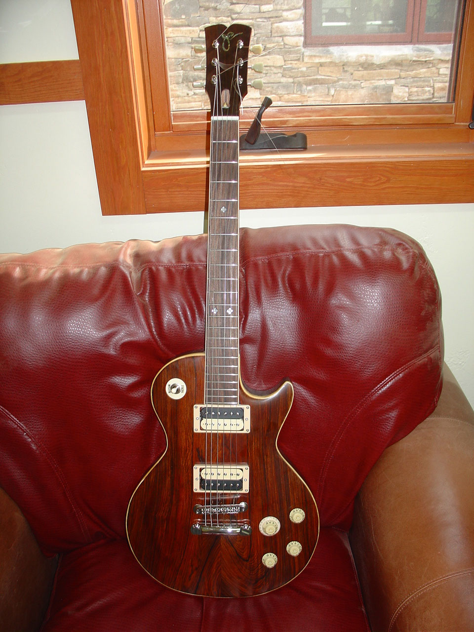 fretboard, rosette, and headstock overlay from mesquite as well.