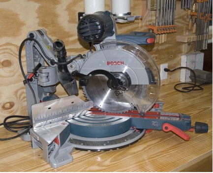 As part of the new shop I splurged and got one of the new Bosch “Glide” power miter saws – it is