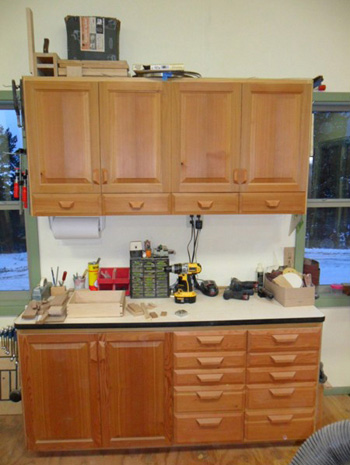 My planes and some other hand tools are stored above and in drawers below, with portable power tool