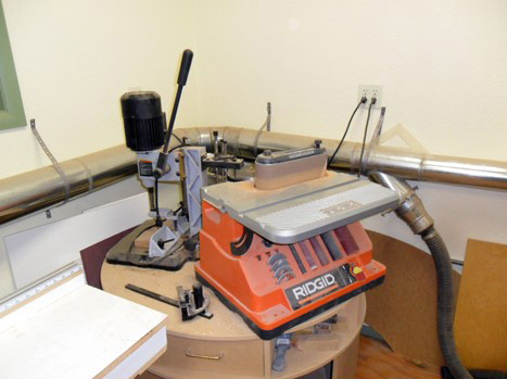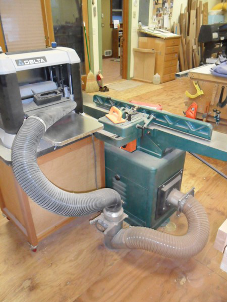 Typical dust collection coming up from the garage below. The portable planer is on a custom