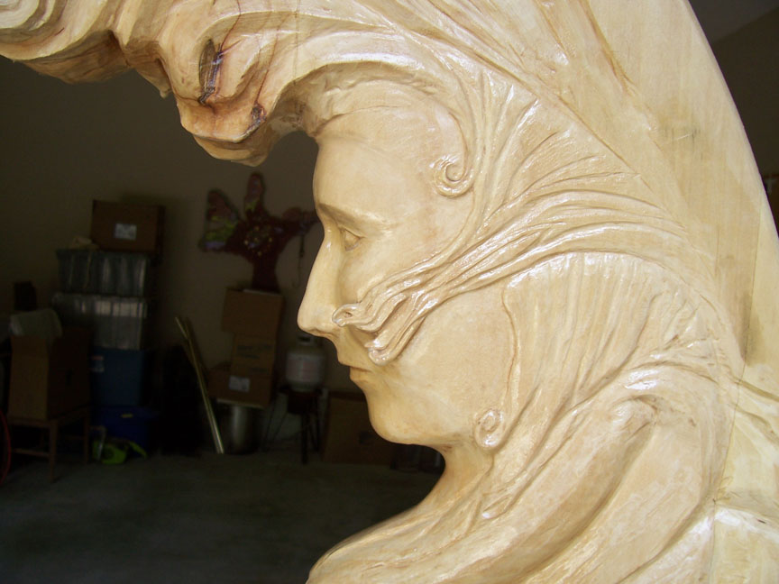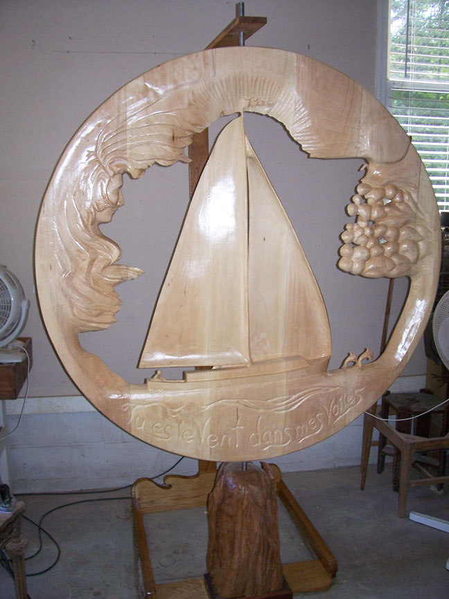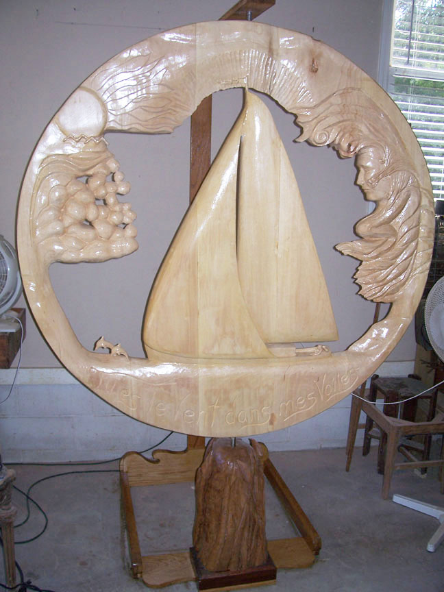 I am just completing this carving entitled; “Tu es le vent dans mes voiles” or You are the wind