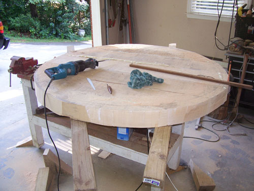I joined the boards and cut out the circular medium with a Sawsall that had a long saber blade. I