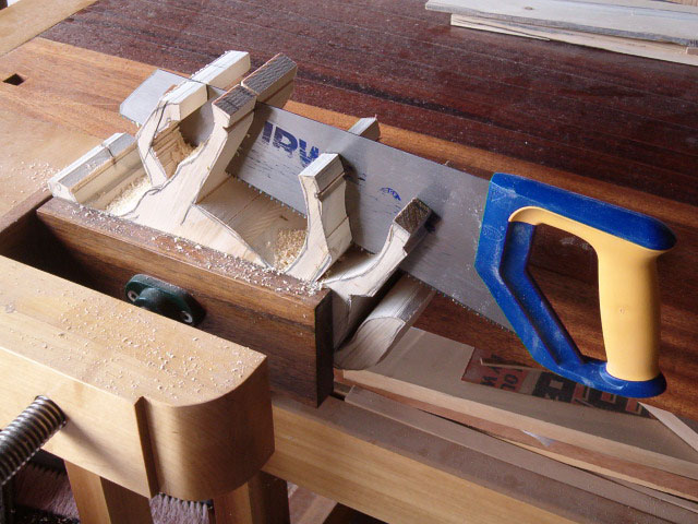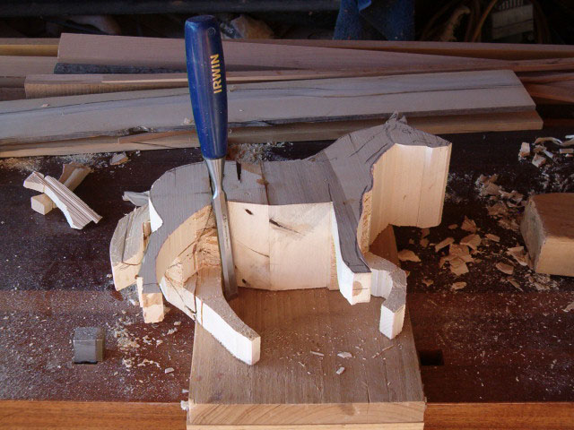 upside down in my wood vise and cut the wood out from between the legs and tail.