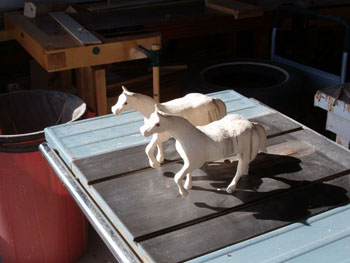 All the horse carvings have on them is polyurethane to give them that Palamino color.