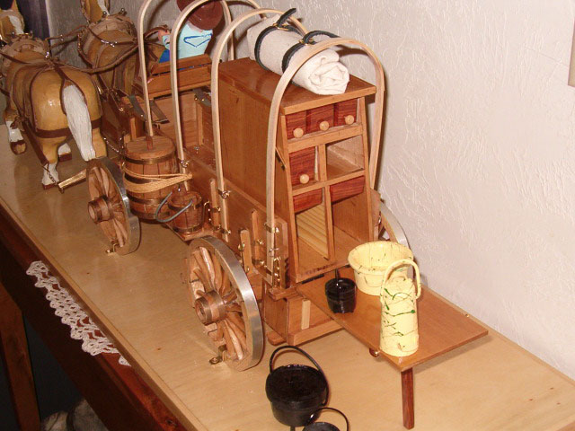 some sandpaper and a lot of work. There's a lot of carving on the wheels on the wagon - the spokes
