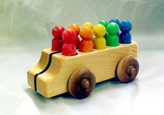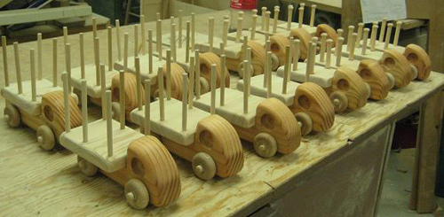 All of our toys are made from mostly recycled wood. That means I spend one day a week going to many