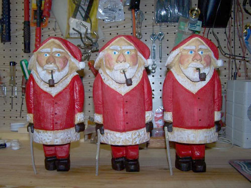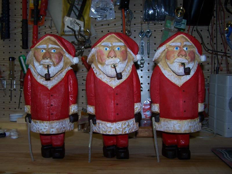 have carved ducks, blue birds, other Santas, and Gnomes. I have also done turnings on the lathe.