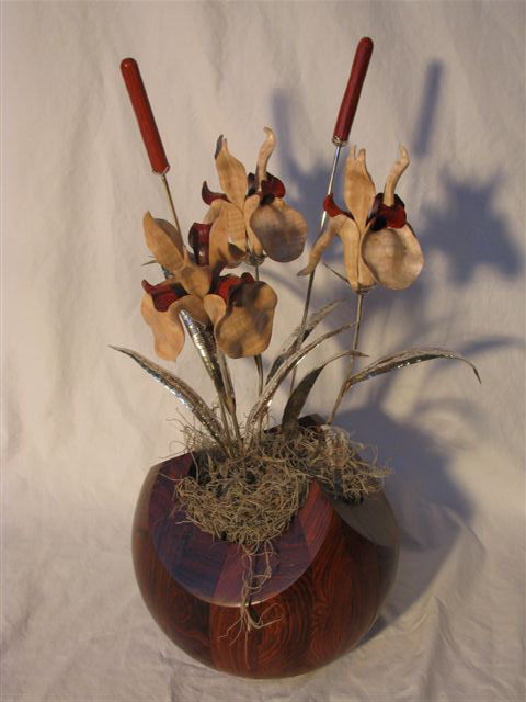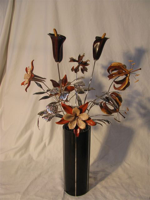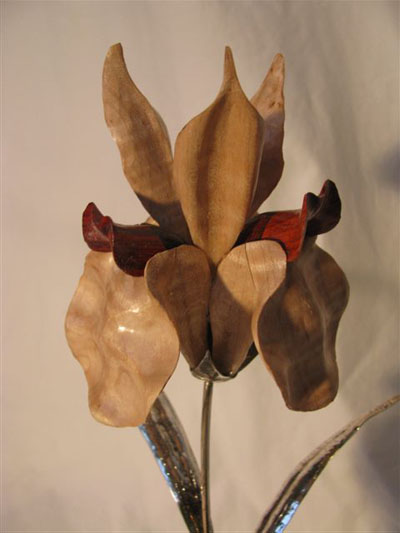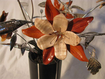 These flowers are made from various exotics with sterling leaves and stems. Curly maple, cocobolo