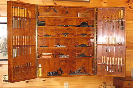 I designed and built this hand tool cabinet as a student project when I attended Haywood Community College in Western North Carolina. We live next to the Blue Ridge Parkway and overlook the Smoky Mountains. The Waynesville community area is quite oriented to crafts.