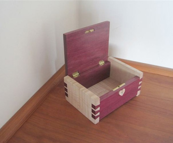I have included pictures of some of my favorite little projects. My most favorite is the jewelry box made out of purple heart and curly maple with a lock and key that I gave to my girlfriend. I call it "Key to Her Heart" and she seems to really like it too.