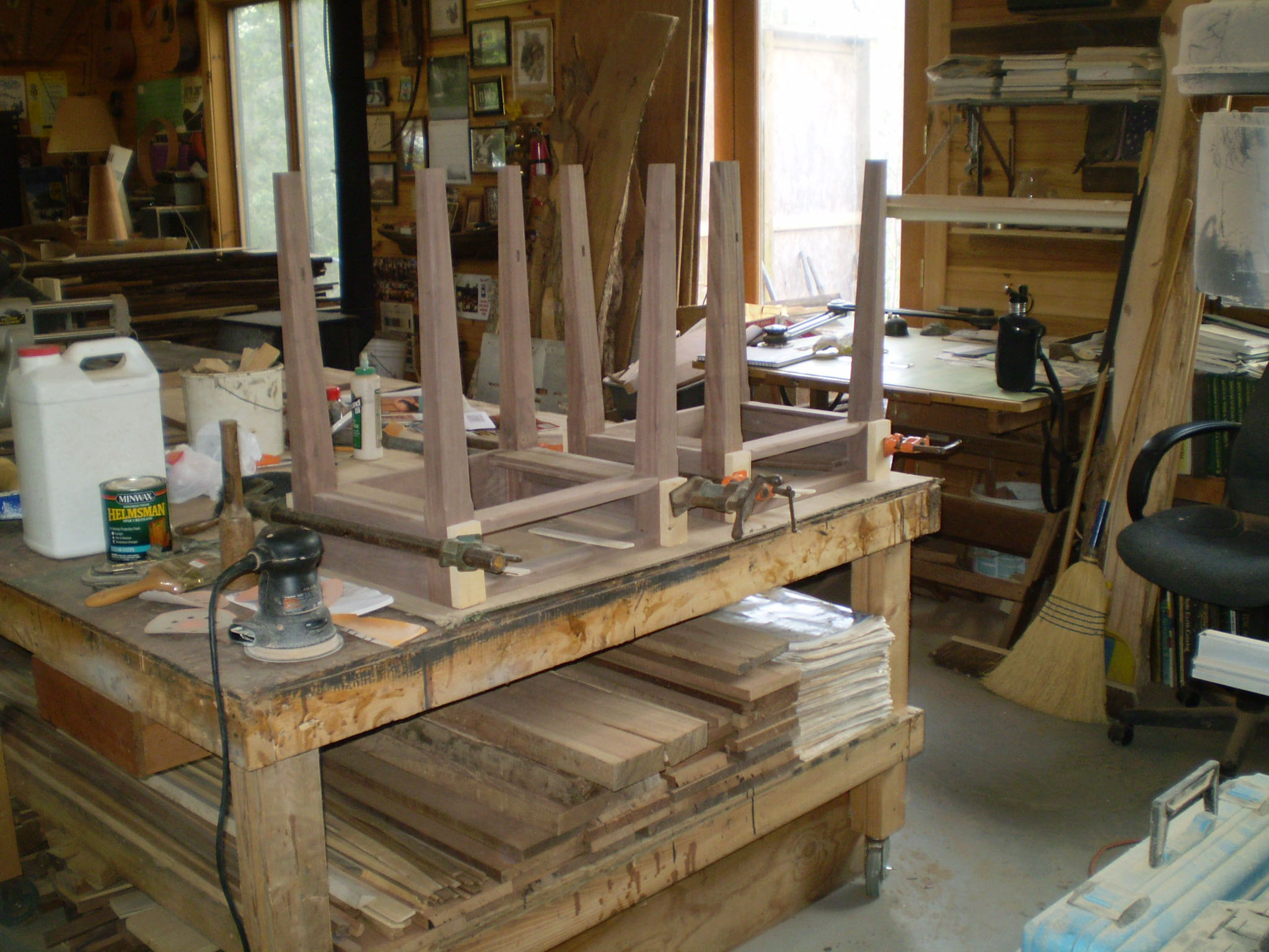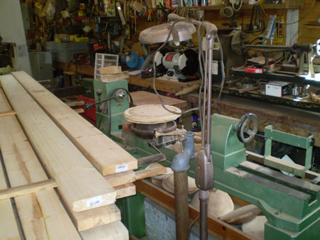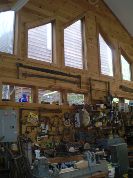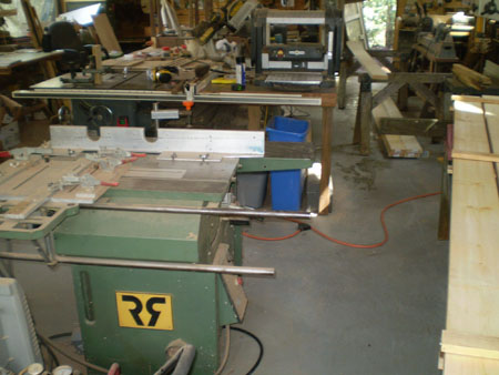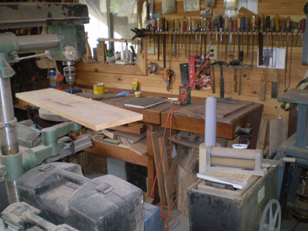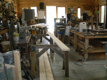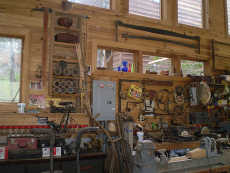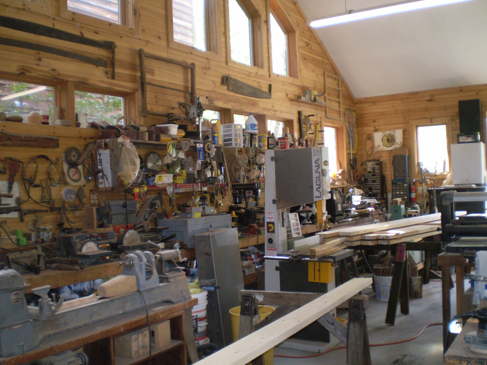 I use my Unisaw mostly and my Robland K26 combination machine fills in the blanks. The Laguna HD16 bandsaw is great for resawing. The 13" Steel City planer that I purchased from Highland Woodworking does great on figured wood and I turn wood on a Grizzly lathe. My work bench was bought at auction, made by Goingback Chiltoskie, one of the original artists in the Southern Highland Handicraft Guild.