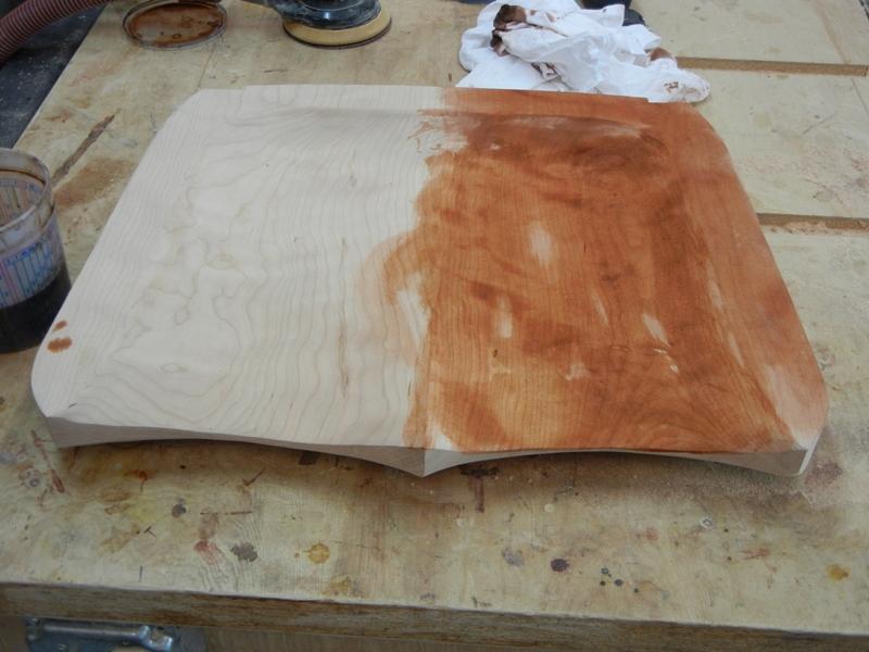 Finally, once all the dye is gone it is time to stop sanding! The final seat has a nice very smooth surface that is free of any defects and is ready for final finishing. As a side benefit, since the trace coat is water based it has raised the grain so there is no need to wet the wood with plain water and re-sand before using a final water based finish.