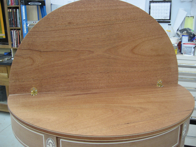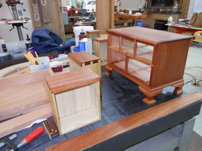 My woodworking interest lies in period furniture reproduction and Greene and Greene era arts and crafts reproductions. We recently completed a half round Norfolk game table in the federal style. It has graceful tapered legs with bellflowers and string inlay. It is solid mahogany with poplar brick laid carcass. Incomplete projects include a Federal 4-drawer Portsmouth chest, a heavily veneered tall case clock, and the Pennsylvania spice chest on last August's Popular Woodworking magazine cover.