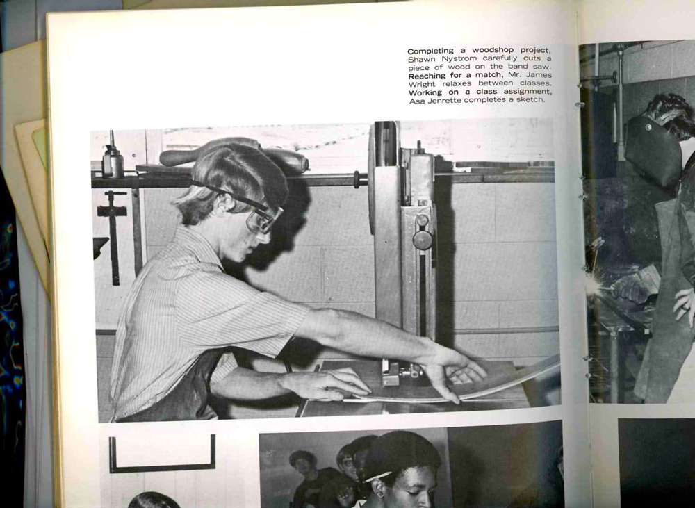 Me at 16 cutting a lamp part on the band saw in school shop. I designed and built a contemporary